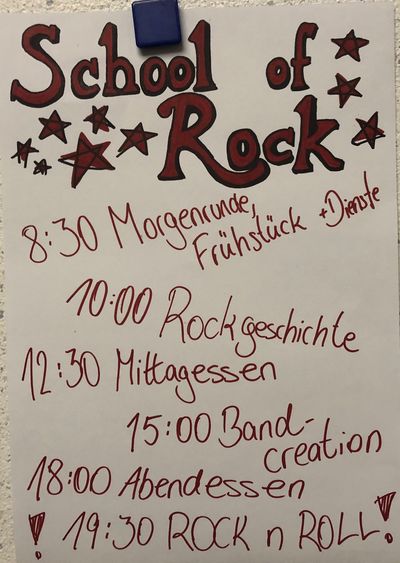 In diesem Sinne stand der Rock an diesem Tag im Mittelpunkt. Nachdem die Kinder mit angemessener Musik geweckt wurden, ging es also zügig daran, ihnen in Gruppen Alles beizubringen, was sie auf ihrem Weg nach Hollywood brauchen würden: